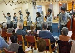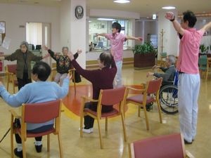 | 毎日、午後からレクリエーションを行なっています。トランプやカラオケ、職員が工夫を凝らしたゲームなど、人との交流を通して、身体的・精神的な健康の維持・増進を図ることを目的としています。 | ![]() |